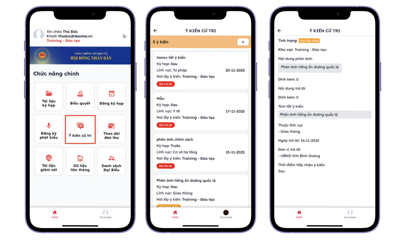 • Theo dõi đơn thư KNTC: Cho phép tra cứu tiến độ xử lý đơn thư khiếu nại, tố cáo, giúp Đại biểu thực hiện chức năng giám sát việc giải quyết của chính quyền.