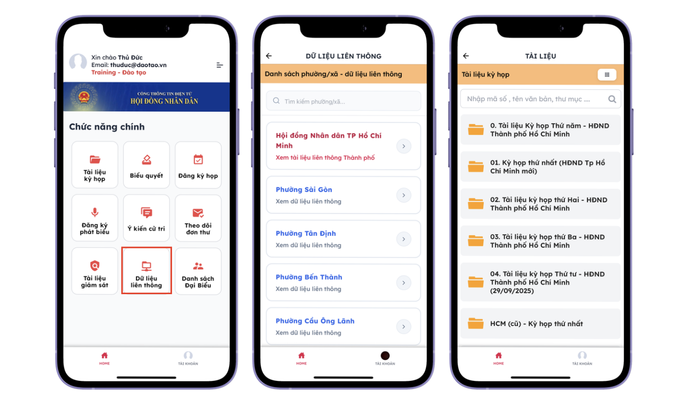 • Dữ liệu liên thông: Nếu có sự kết nối dữ liệu giữa cấp Xã/Phường với cấp Tỉnh/Thành phố, Đại biểu có thể khai thác dữ liệu dùng chung tại đây.