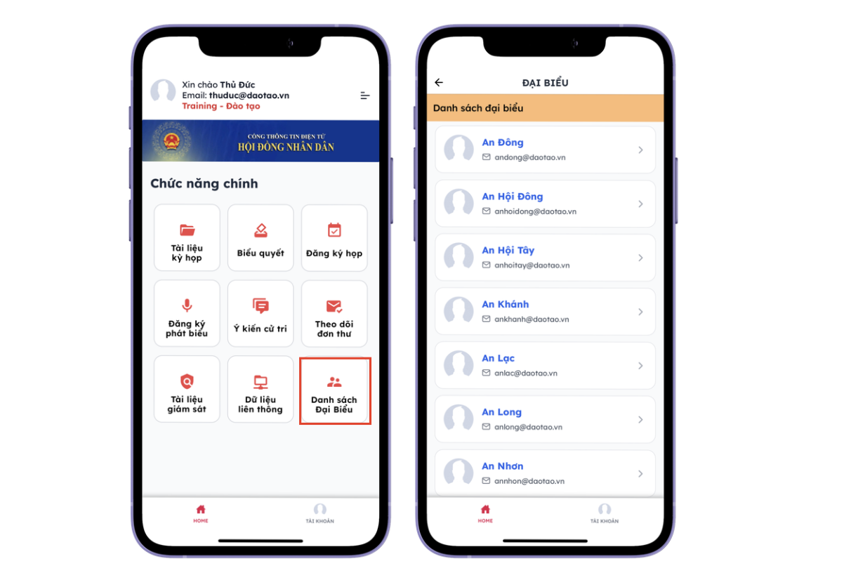 • Danh sách Đại biểu: Xem danh sách đại biểu cấp xã, phường