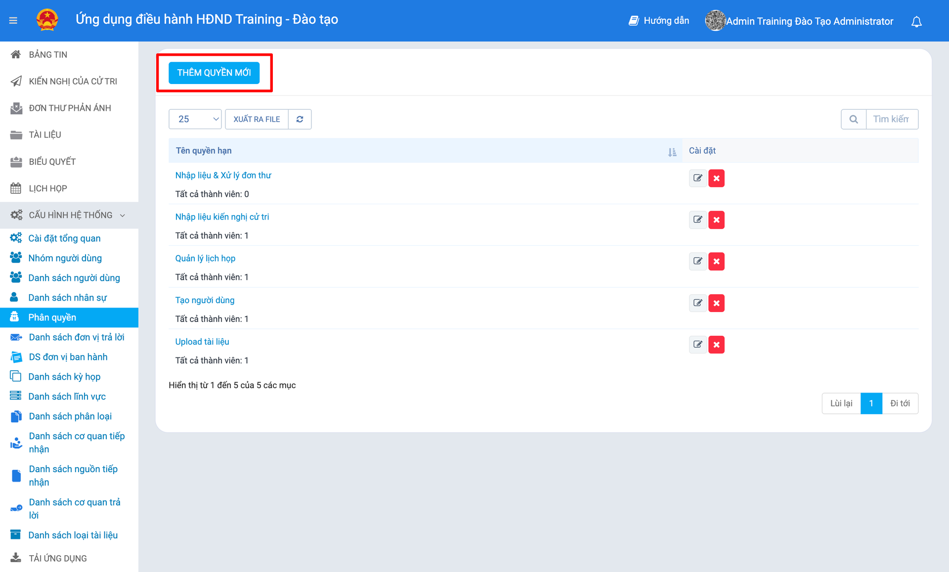 Tiếp tục chọn nút "Thêm quyền mới" để tạo một phân quyền
