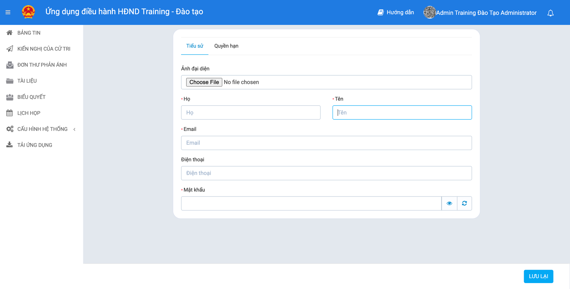 - Toàn quyền thao tác (Xem, Thêm mới, Sửa, Xóa) đối với danh sách Người dùng.