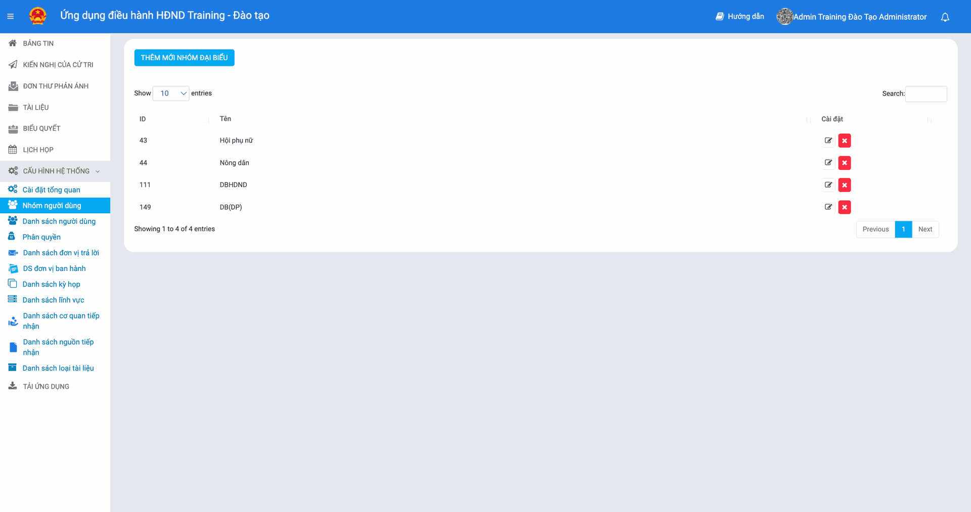 2. Thêm mới nhóm đại biểu