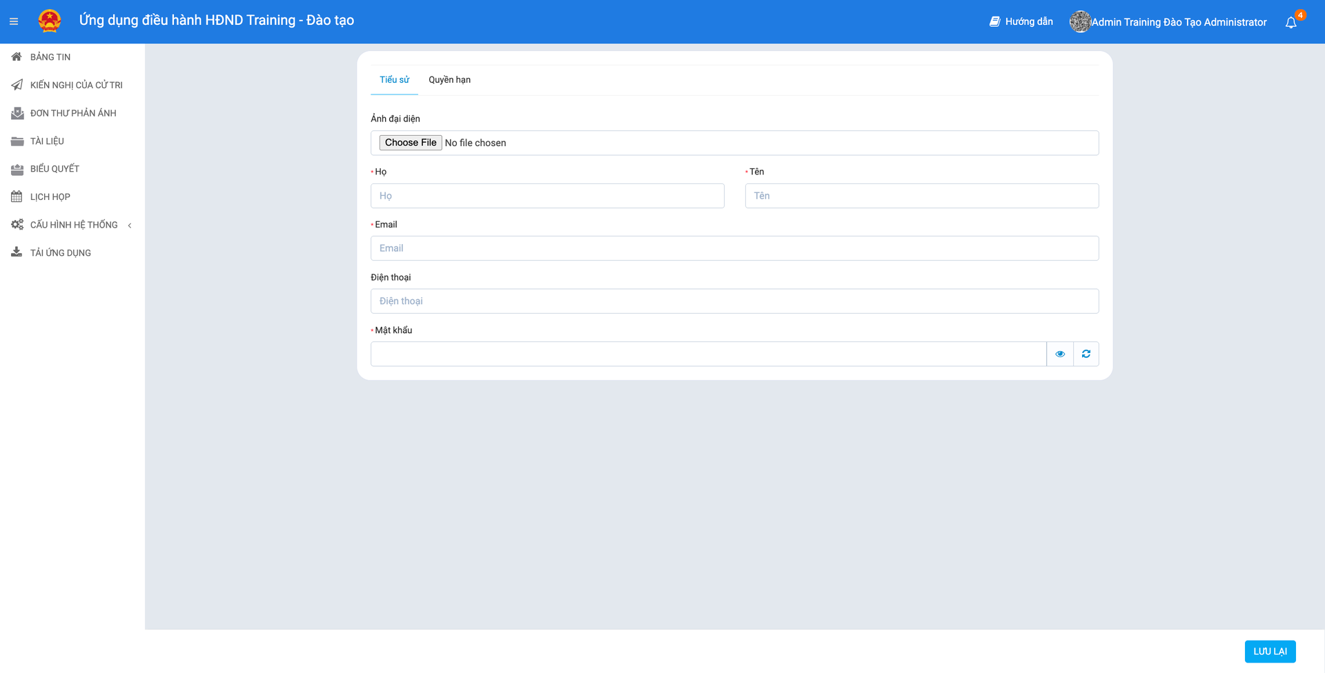 - Một biểu mẫu (Form) sẽ xuất hiện. Admin cần nhập đầy đủ các thông tin bắt buộc như: Họ và tên, Email công vụ, Số điện thoại, Chức vụ và Đơn vị công tác.