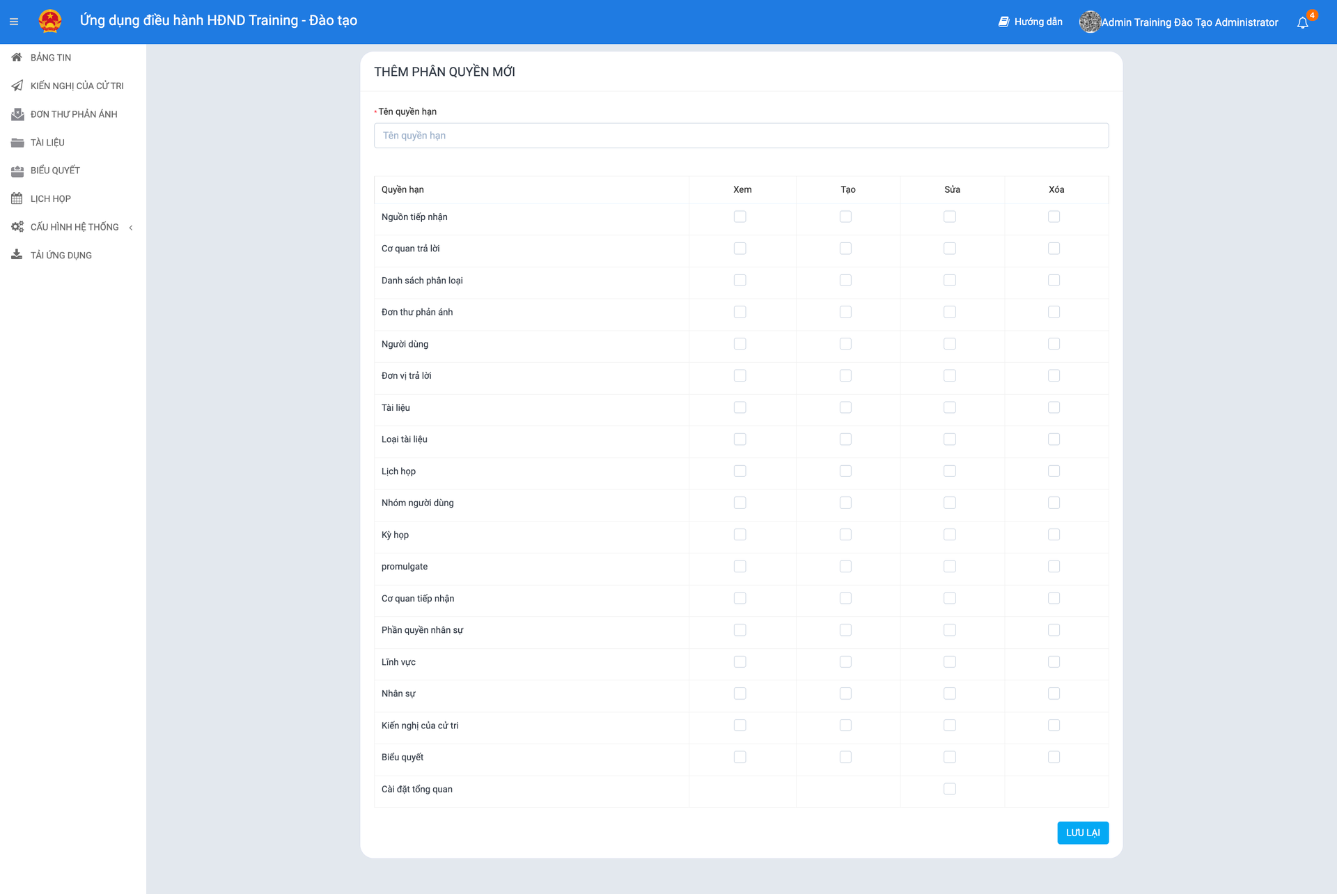 Chọn "Lưu lại" để lưu phân quyền.